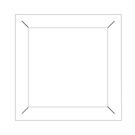 Okazuje się, że model ten można z łatwością wykonać bez użycia kleju poprzez połączenie ze sobą trzech odpowiednio ponacinanych ramek. Kwadraty przecinają się wzajemnie wzdłuż przekątnych (rys. 5). Aby można było je połączyć należy je w odpowiedni sposób ponacinać. Pierwszy kwadrat nacinamy tak, jak na rys. 6. Nacięcia zawierają się w przekątnych i prowadzą do połowy szerokości ramki.