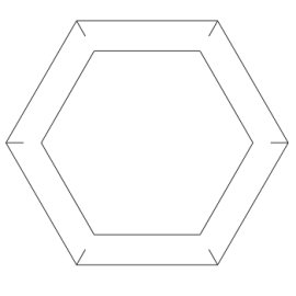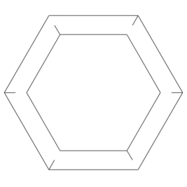 Przygotowanie tych ramek nie jest istotnie trudniejsze. Podobnie jak wcześniej sześciokąty przecinają się wzdłuż przekątnych (głównych). Tak też należy wykonać nacięcia. Pierwsza ramka ma wszystkie szczeliny od zewnątrz (rys. 15). Druga musi mieć jedną parę szczelin od wewnątrz (rys. 16).