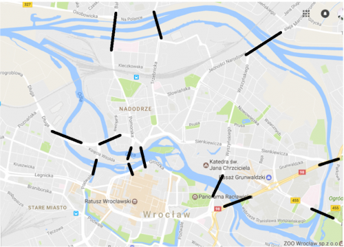 Zad. 3. W XVIII wieku szwajcarski matematyk Leonard Euler rozwiązał problem mostów królewieckich - pokazał, że nie można przejść po wszystkich mostach tego miasta dokładnie jeden raz. A jak to jest z układem mostów wrocławskich zaznaczonych na poniższej mapie kolorem czarnym?